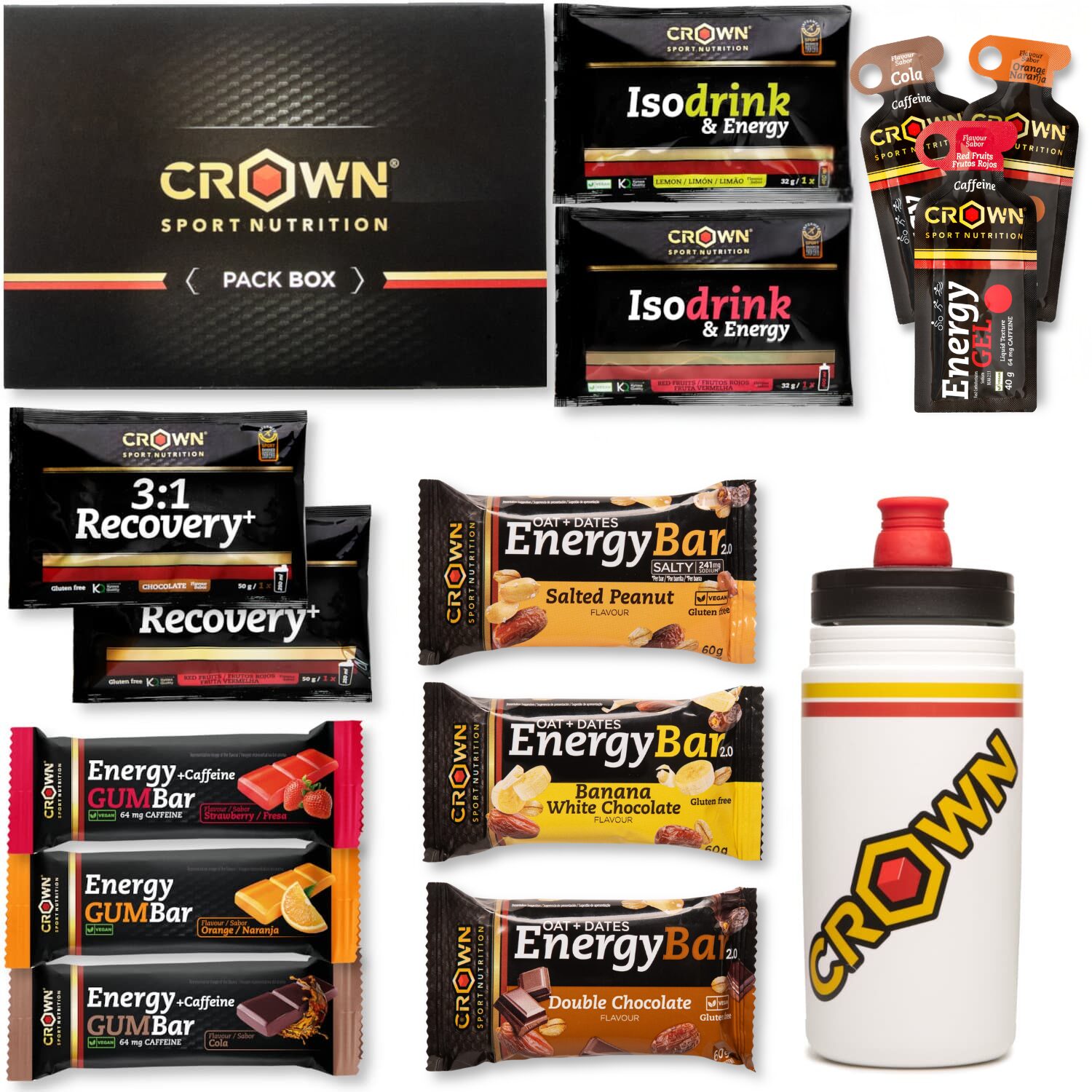Tasting pack with Crown Sport Nutrition’s 14 star products, designed to meet all your energy, hydration, and recovery needs before, during, and after training.